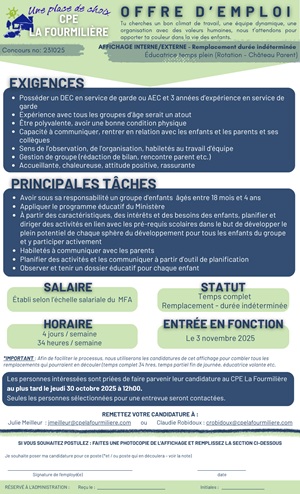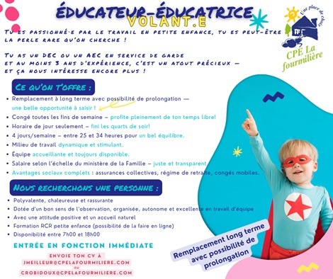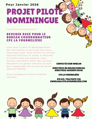 n'hésitez pas à contacter Madamer Kim Whelan, directrice du milieu familial au 819-623-7166 poste 228.