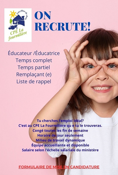 Une campagne de financement a lieu pour l'achat de matériel éducatif et l'aménagement de la cour extérieure de notre nouvelle installation qui sera située à Ferme-Neuve.